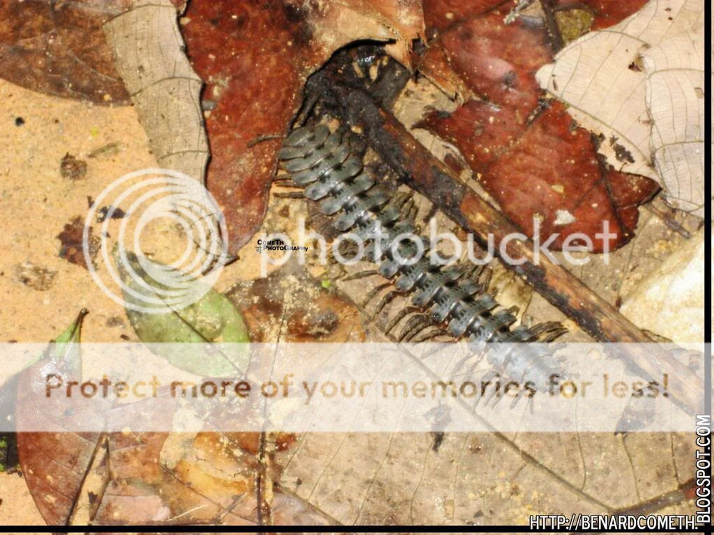 Black not so long Insect with not so many legs compared to the Red long Insect thingy with lots of legs